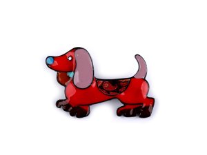 Brož jezevčíka s barevným smaltem je doplněk, který okamžitě upoutá pozornost.