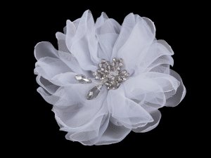 Romantická textilní brož květu z organzy má bohaté okvětní plátky, je jemně nadýchaná.