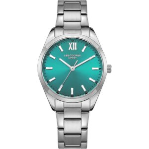 Dámské náramkové hodinky Napájení z baterie Průměr pouzdra 34,0 mm Pouzdro ve tvaru kruhu Kovové pouzdro Stříbrná barva pouzdra Kovový tah Stříbrná barva tahu Ručičkový ciferník Zelená barva ciferníku …