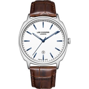 Pánské náramkové hodinky Napájení z baterie Průměr pouzdra 42,0 mm Pouzdro ve tvaru kruhu Kovové pouzdro Stříbrná barva pouzdra Kožený tah Hnědá barva tahu Ručičkový ciferník Stříbrná barva ciferníku …