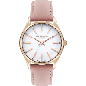 Dámské náramkové hodinky Napájení z baterie Průměr pouzdra 36,0 mm Pouzdro ve tvaru kruhu Kovové pouzdro Růžové zlato barva pouzdra Kožený tah Růžová barva tahu Ručičkový ciferník PERLEŤOVÁ barva ciferníku …