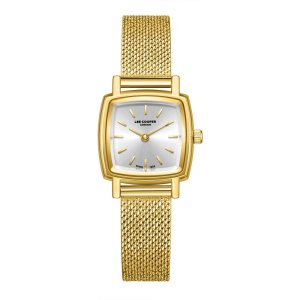 Dámské náramkové hodinky Napájení z baterie Průměr pouzdra 27,0 mm Pouzdro ve tvaru čtverce Kovové pouzdro Zlatavá barva pouzdra Kovový tah Zlatavá barva tahu Ručičkový ciferník Stříbrná barva ciferníku …