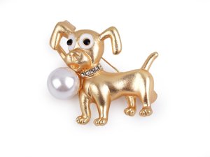 Metalická kovová brož roztomilých pejsků je decentně doplněná broušenými kamínky a perlou.