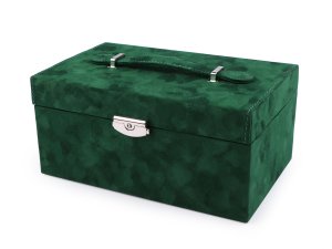 Uzamykatelná šperkovnice se zrcátkem má semišový povrch.