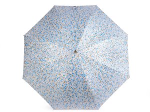 Velký dámský deštník s potiskem květů je vystřelovací, konstrukci má z kovového drátu a pružných lamel, které tvoří osm polí.
