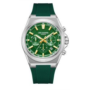 Pánské náramkové hodinky Napájení z baterie Průměr pouzdra 43,0 mm Pouzdro ve tvaru kruhu Kovové pouzdro Stříbrná barva pouzdra Zelená barva tahu Ručičkový ciferník Zelená barva ciferníku Ciferník s …