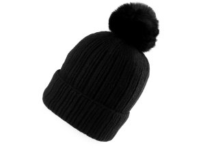 Řádkovaná čepice s velkou bambulí je ideálním doplňkem pro chladné dny.