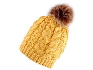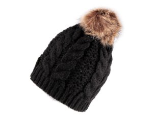 Pletená čepice s bambulí a ohrnutým okrajem má krásný copánkový vzor.
