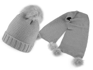 Sada s čepicí a šálou je skvělým a stylovým společníkem do zimního počasí. Čepice má ohrnutý lem a velikou chlupatou bambuli. Šála má na každém konci 2 bambule, všechny bambule věrně imitují kožešinu.
