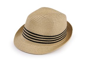 Letní klobouk typu fedora zdobí jednoduchá černá stuha.