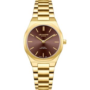 Dámské náramkové hodinky Napájení z baterie Průměr pouzdra 33,0 mm Pouzdro ve tvaru čtverce Kovové pouzdro Zlatavá barva pouzdra Kovový tah Zlatavá barva tahu Ručičkový ciferník Hnědá barva ciferníku …