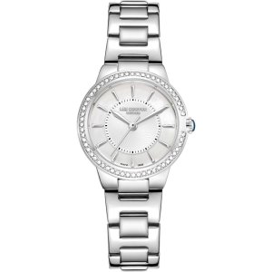 Dámské náramkové hodinky Napájení z baterie Průměr pouzdra 30,0 mm Pouzdro ve tvaru kruhu Kovové pouzdro Stříbrná barva pouzdra Kovový tah Stříbrná barva tahu Ručičkový ciferník Stříbrná barva ciferníku …