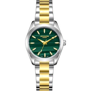 Dámské náramkové hodinky Napájení z baterie Průměr pouzdra 32,0 mm Pouzdro ve tvaru kruhu Kovové pouzdro Stříbrná barva pouzdra Kovový tah Stříbrná/zlatá barva tahu Ručičkový ciferník Zelená barva ciferníku …