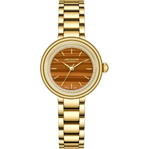 Dámské náramkové hodinky Napájení z baterie Průměr pouzdra 28,0 mm Pouzdro ve tvaru kruhu Kovové pouzdro Zlatavá barva pouzdra Kovový tah Zlatavá barva tahu Ručičkový ciferník Hnědá barva ciferníku Ciferník …