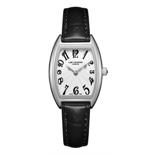 Dámské náramkové hodinky Napájení z baterie Průměr pouzdra 30,0 mm Pouzdro ve tvaru obdelníku Kovové pouzdro Stříbrná barva pouzdra Kožený tah ČERNÉ barva tahu Ručičkový ciferník Stříbrná barva ciferníku …
