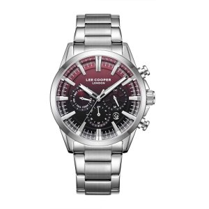 Pánské náramkové hodinky Napájení z baterie Průměr pouzdra 43,0 mm Pouzdro ve tvaru kruhu Kovové pouzdro Stříbrná barva pouzdra Kovový tah Stříbrná barva tahu Ručičkový ciferník Červená barva ciferníku …