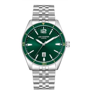 Pánské náramkové hodinky Napájení z baterie Průměr pouzdra 43,0 mm Pouzdro ve tvaru kruhu Kovové pouzdro Stříbrná barva pouzdra Kovový tah Stříbrná barva tahu Ručičkový ciferník Zelená barva ciferníku …