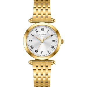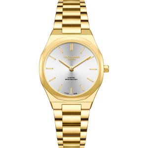 Dámské náramkové hodinky Napájení z baterie Průměr pouzdra 32,0 mm Pouzdro ve tvaru kruhu Kovové pouzdro Zlatavá barva pouzdra Kovový tah Zlatavá barva tahu Ručičkový ciferník Stříbrná barva ciferníku …