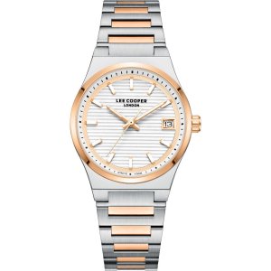 Dámské náramkové hodinky Napájení z baterie Průměr pouzdra 33,0 mm Pouzdro ve tvaru kruhu Kovové pouzdro Stříbrná/zlatá barva pouzdra Kovový tah Stříbrná/zlatá barva tahu Ručičkový ciferník Stříbrná …