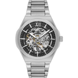 Pánské náramkové hodinky Automatický pohon Průměr pouzdra 43,0 mm Pouzdro ve tvaru kruhu Kovové pouzdro Stříbrná barva pouzdra Kovový tah ČERNÉ barva tahu Ručičkový ciferník Ciferník s dvanácti indexy …