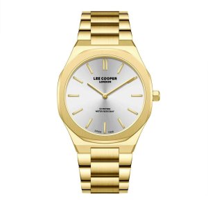 Pánské náramkové hodinky Napájení z baterie Průměr pouzdra 42,0 mm Pouzdro ve tvaru čtverce Kovové pouzdro Zlatavá barva pouzdra Kovový tah Zlatavá barva tahu Ručičkový ciferník Stříbrná barva ciferníku …