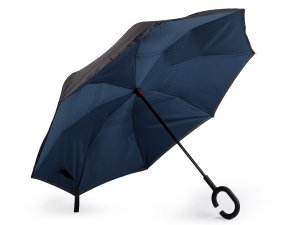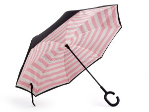 Obrácený deštník s barevným vnitřním potahem má revoluční řešení konstrukce.