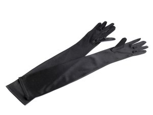 Extra dlouhé saténové rukavice jsou velice noblesní.