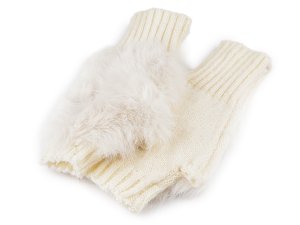 Bezprsté rukavice z pleteniny ozdobené umělým kožíškem představují spojení elegance a praktičnosti.