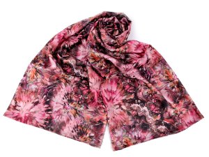 Šátek se vzorem barevných malovaných květů je lehounký a vzdušný, velice příjemný na dotek.