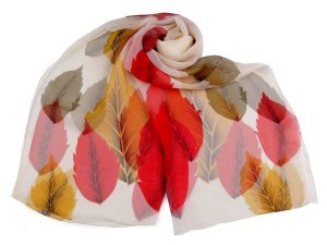 Velký šátek se vzorem rozčepýřených listů je příjemný a prodyšný, bude pohodlný v jakékoli situaci.
