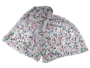 Šátek se vzorem barevného mramoru je lehounký, vzdušný, příjemný na dotek.