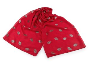 Šátek s metalickým potiskem listů je velice příjemný na dotek, je vzdušný a lehký.