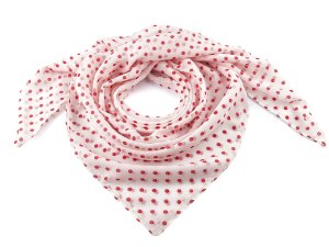Bavlněný šátek s drobnými puntíky můžete nosit nejen kolem krku, ale i jako pokrývku hlavy.