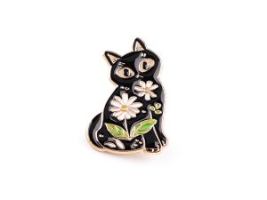 Malá stylová brož s kočkou je ozdobená barevným smaltem.