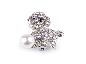 Kovová brož pejska je po celém povrchu osázená třpytivými broušenými kamínky.