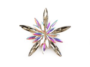 Brož sněhová vločka je osázená broušenými kamínky, které se efektně třpytí.