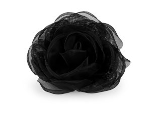 Brož ve tvaru růže je jemně nadýchaná a vyrobena z polyesteru.