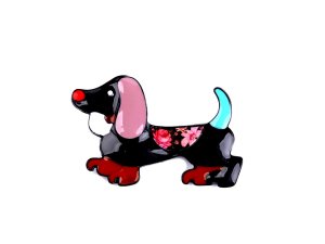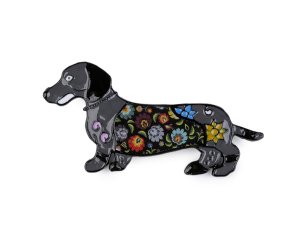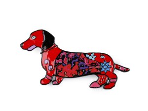 Brož pejska jezevčíka s barevným smaltem je doplňkem, který okamžitě upoutá pozornost.