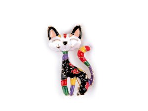 Brož kočky s barevným smaltem je doplňkem, který okamžitě upoutá pozornost.