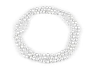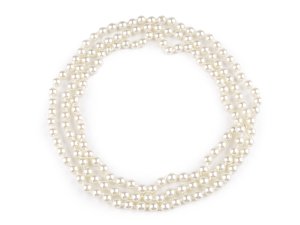 Dlouhý náhrdelník z voskovaných perel je levnější variantou perel pravých.