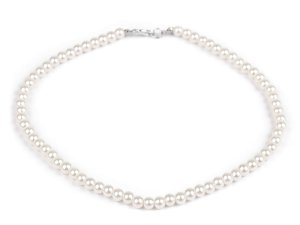 Dlouhý náhrdelník z voskovaných perel je levnější variantou perel pravých.