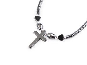 Poutavý náhrdelník vyrobený z korálků pokoveného hematitu a kvalitní nerezové oceli je velice elegantní, patří mezi šperky, které díky své fascinující povrchové úpravě zaujmou na první pohled.