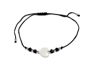 Náramek z broušených korálků je ozdobený perleťovým korálkem kočky.