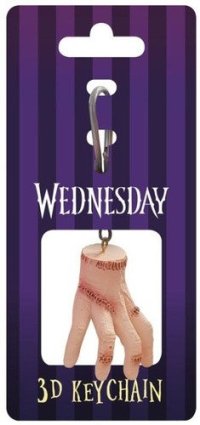 3D klíčenka s licenčním motivem série Wednesday a kovovou karabinou na zavěšení.