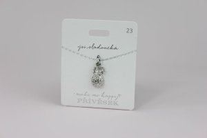 Malý přívěsek z nerezové oceli má jednoduchý design.