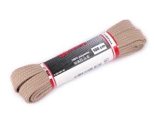 Ploché bavlněné tkaničky jsou opatřené koncovkami.