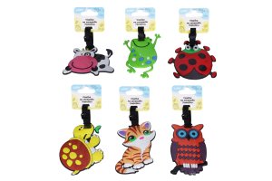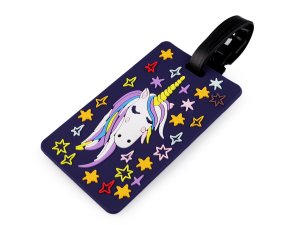 Jmenovka na kufr má na jedné straně výrazný barevný obrázek.