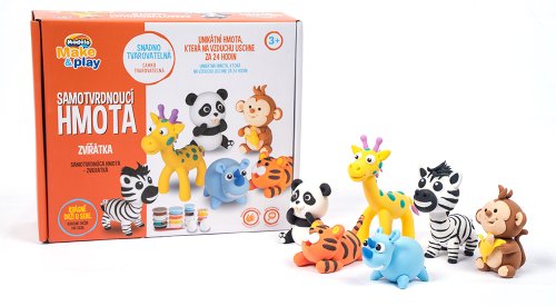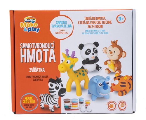 Samotvrdnoucí modelovací hmota. Prémiová kvalita, navíc oproti standardní modelíně po vymodelování na vzduchu sama vytvrdne. Děti si pak mohou se zvířátky dále hrát. Podporuje jemnou motoriku. Balení obsahuje 15 tub modelíny.