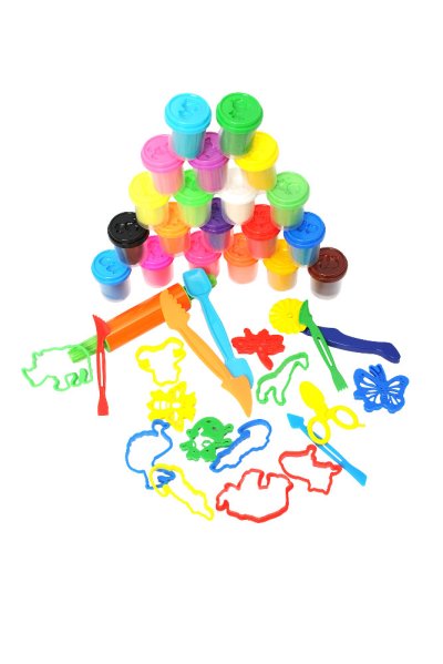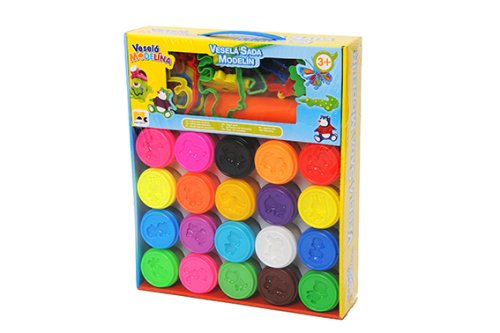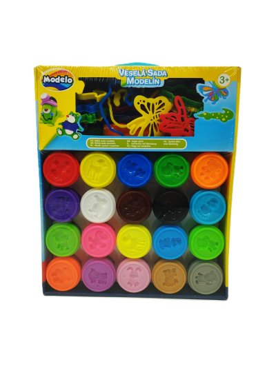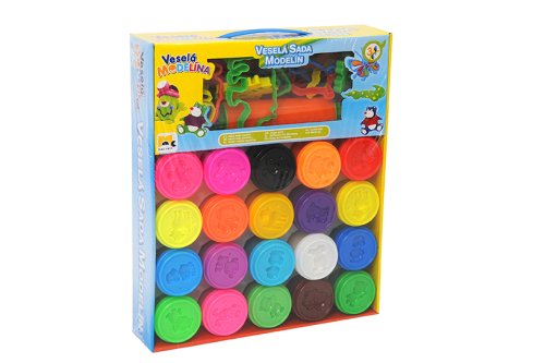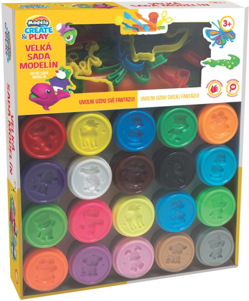 Velká sada modelín, která obsahuje 20 kelímků a spoustu tvarovátek a vykrajovátek pro tvé tvoření. Víčka jednotlivých kelímků můžeš použít jako vytlačovátka.