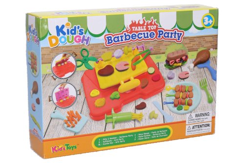 Modelovací hmota Příprava grilování výtvarný set. Obsah balení - gril s formičkami na potraviny, tvarovací nástroje, potřeby na grilování, 4x56g kelímky modelovací hmoty (červená, modrá, zelená, hnědá). Návod na míchání barev na zadní straně obalu.